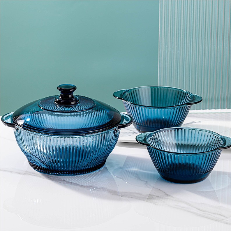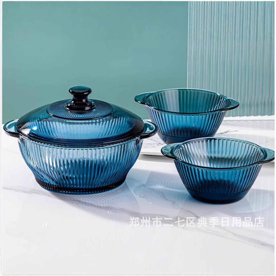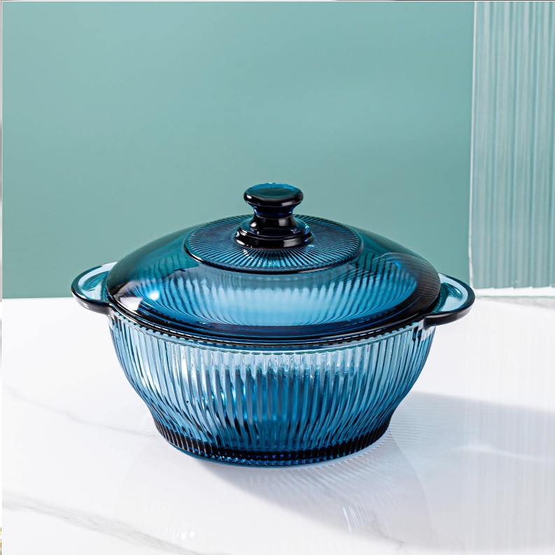 Leweishi MLSWB/L1 インクブルー縦縞シングルパック大容量スープポットクリエイティブライト高級ガラスポット卸売