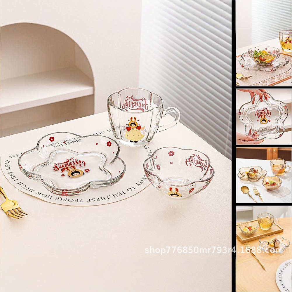 Leweishi MMWPB/L3 「梅」 フルハピネス食器 3点セット クリエイティブガラス食器セット ビジネスギフト