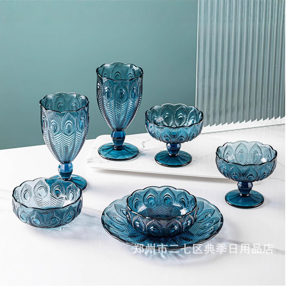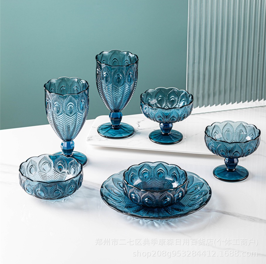 Leweishi モノクローブルーピーコック幸運 7 点セットクリエイティブライト高級家庭用ガラス食器ビジネス記念品卸売