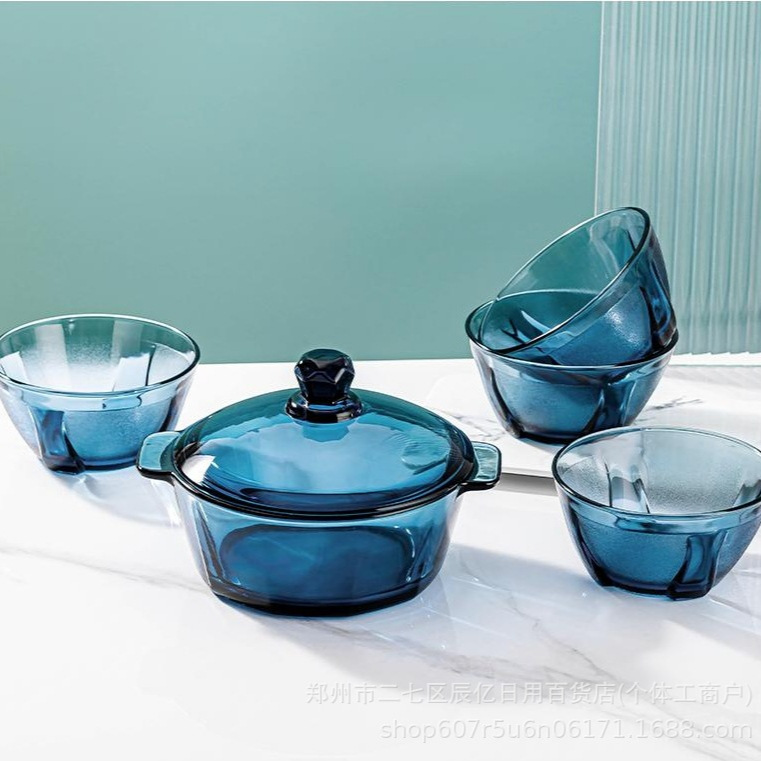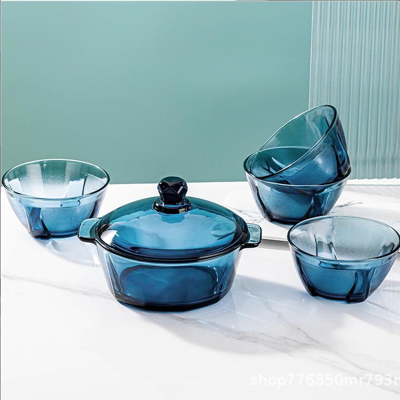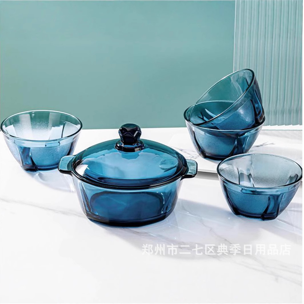 Leweishi ガラス食器セットインクブルークリスタルダイヤモンドポット 5 点セット MLJZB/L5 ナトリウムカルシウムガラス食器卸売