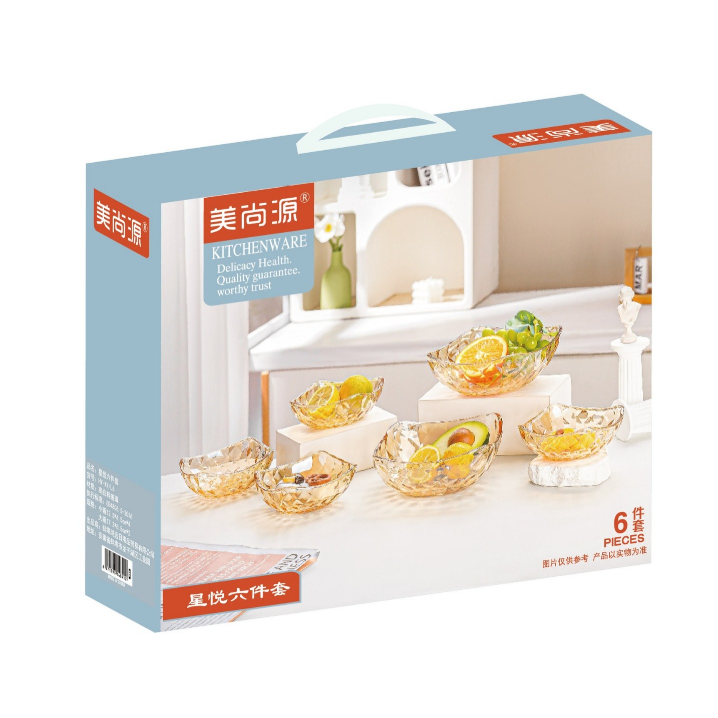 Meishangyuan Xingyue 6 ピースクリエイティブライト高級ガラスボウルセットホームサラダボウルビジネスストアお祝いイベントギフト