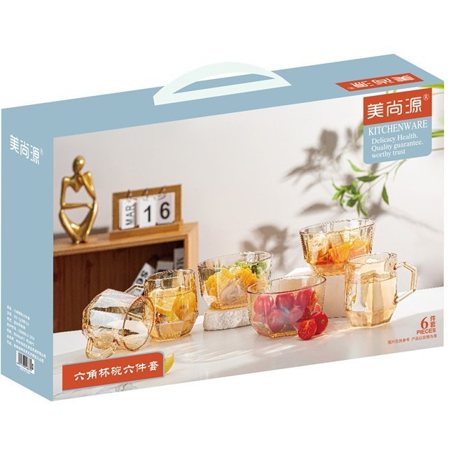 Meishangyuan 六角カップとボウル 6 点セットクリエイティブシンプルなガラスサラダボウルセットイベントギフト共同購入卸売