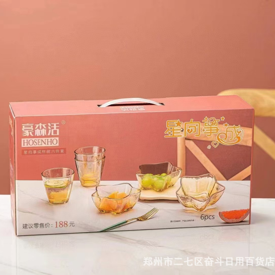 好森活星向事成杯碗セット十点セット店慶イベントプレゼント卸売りお土産創意ガラス水