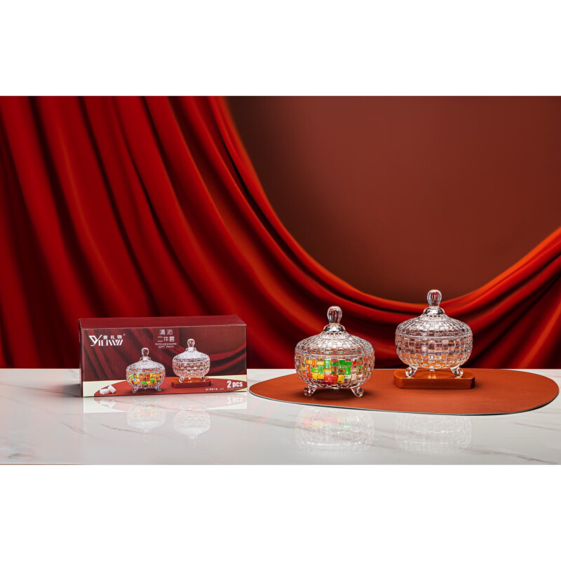 壱プレゼント清沁二点セット水晶ガラス糖果杯二点セットお祝い糖筒客間果物菓子貯蔵物