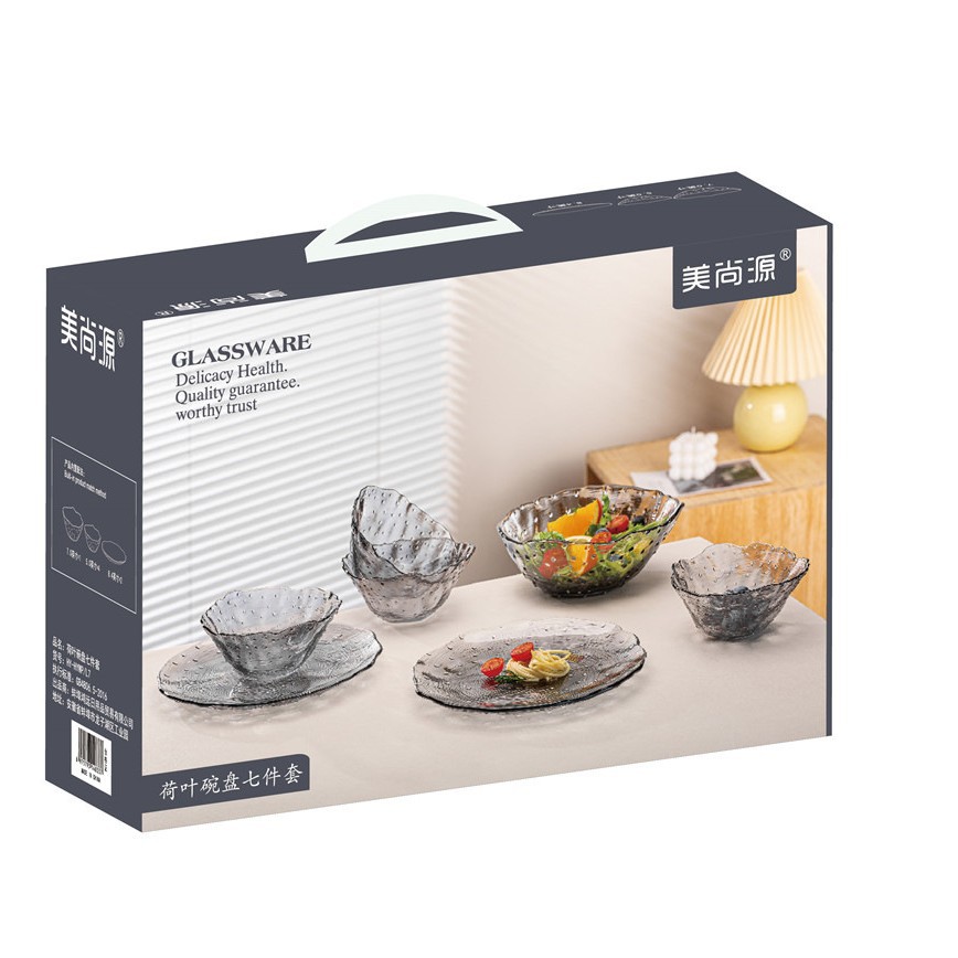 美尚源蓮の葉の碗の皿の7セットのガラスの碗の食器のセットのビジネスの贈り物は客先に販促の贈り物の卸売りを送ります。