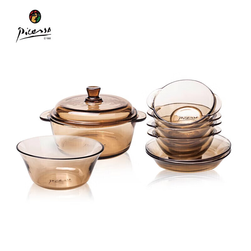 Picassoドーラ食器8点セットシンプルなヨーロッパ式琥珀色の食事皿、高ホウ素シリコン耐熱ガラス材質