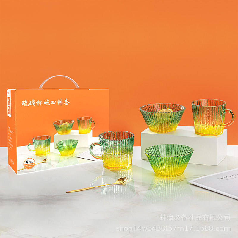 加佳熙美グラスボウル4点セットサラダボウルジュースカップデザートボウルセットガラス食器ギフトボックス