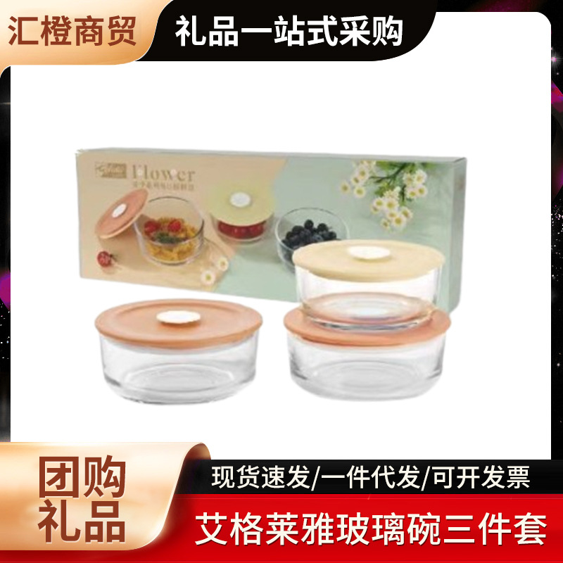 Aiglaiya ABX033L3 フラワーシーズンシリーズ ガラス製鮮度保持ボウル 3点セット 密封セット 企業チームビルディング用