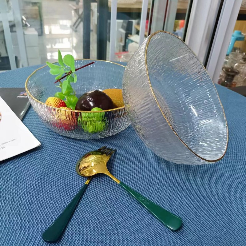 家庭用ガラス金辺創意サラダ碗果物皿客間豪華果物皿創意サラダ碗金辺卸売り透明