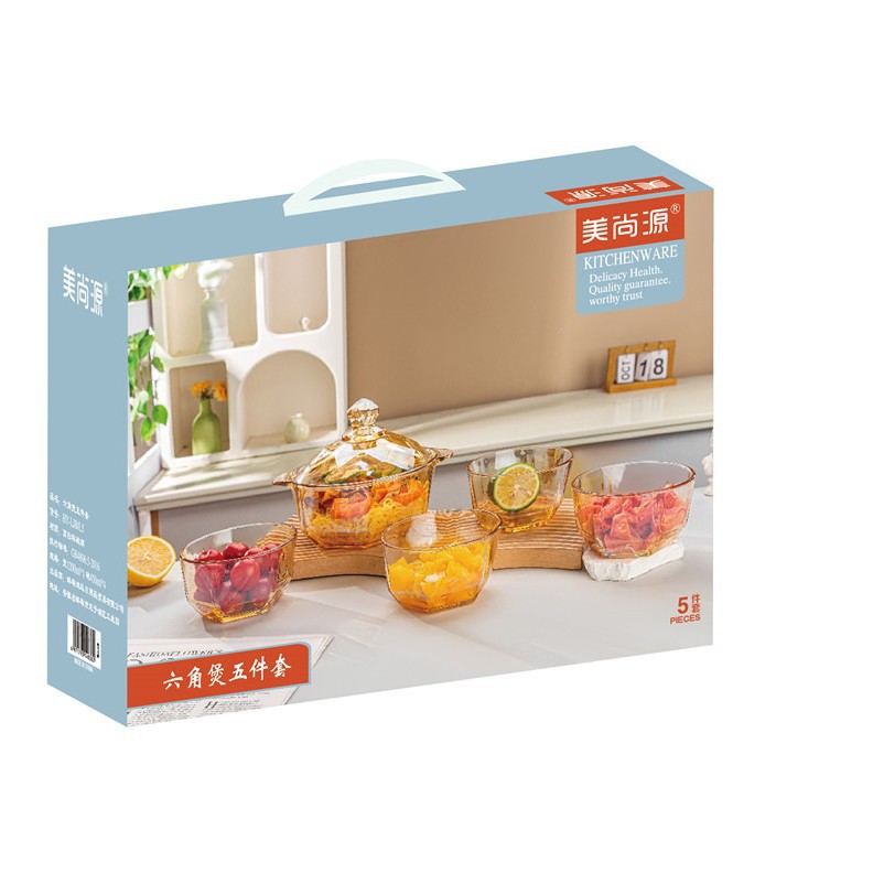 美尚源六角鍋五点セット家庭用ガラス食器セットビジネス活動福祉会員礼卸売り共同購入