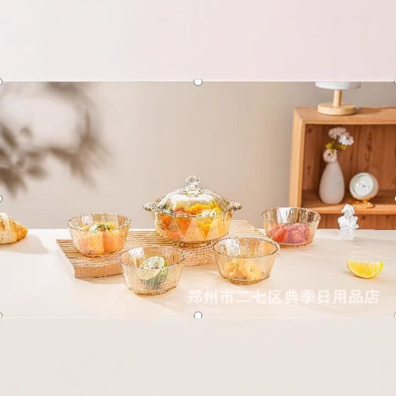 デロイト花開富貴四点セット創意グラスサラダ碗家庭用ガラス食器ビジネスプレゼント卸売り