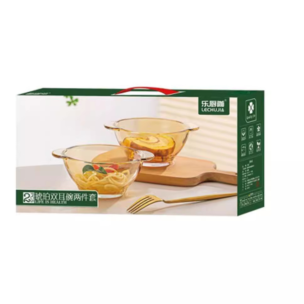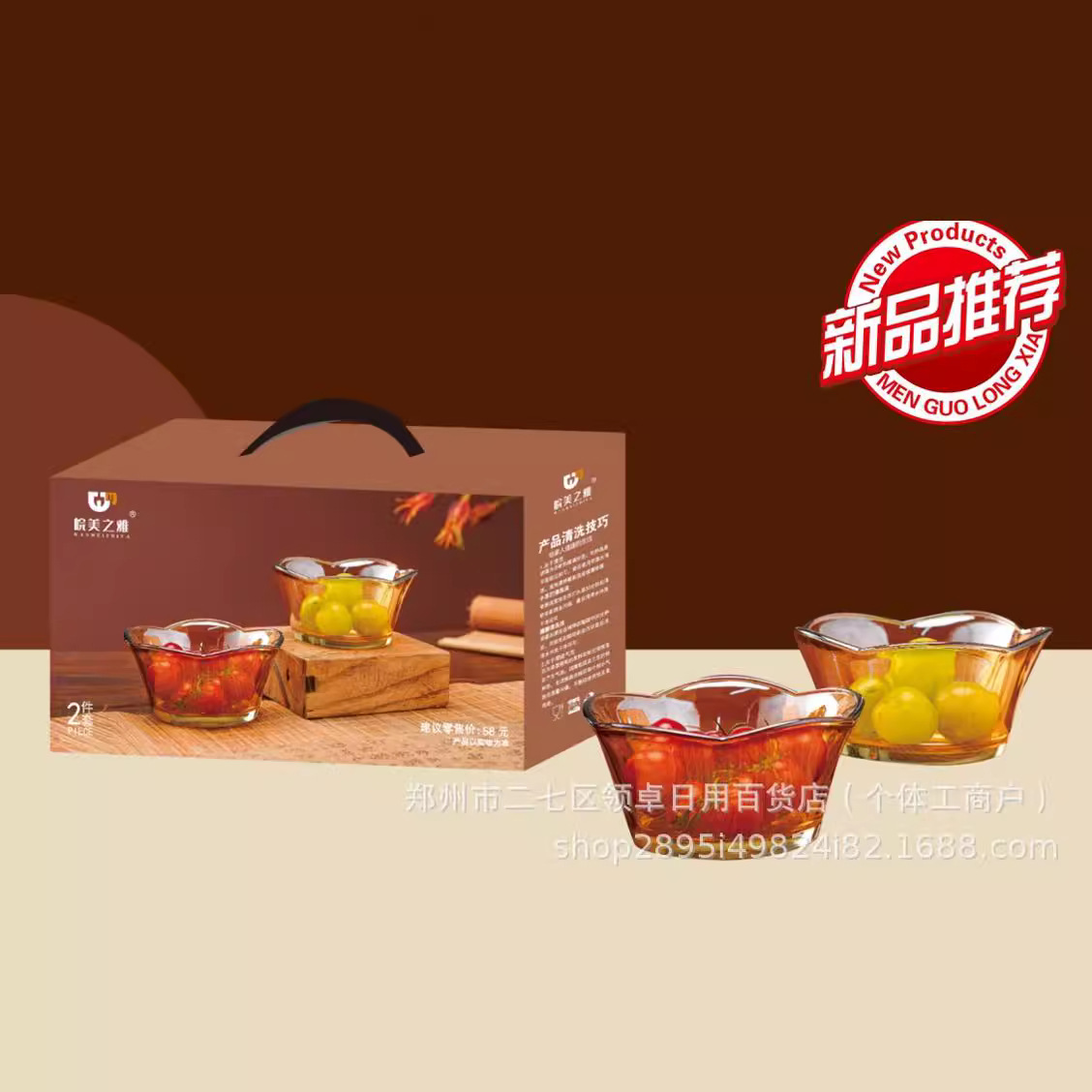 家庭用ガラス両耳碗2点セット琥珀色果物サラダ碗食器セットイベントプレゼント