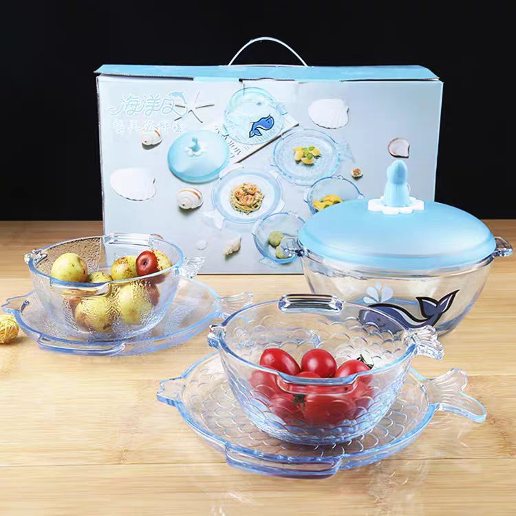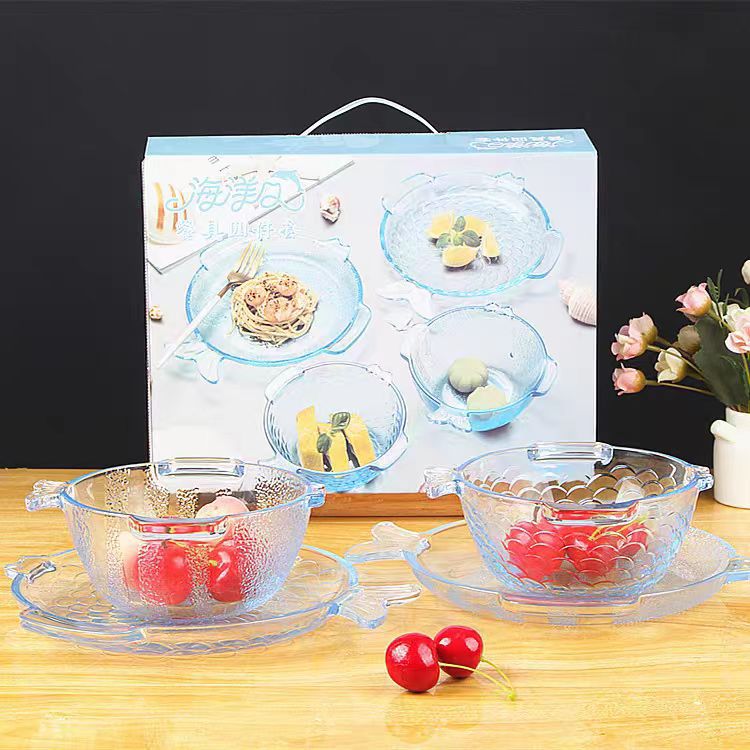 家庭用山水の間の10点セットの琥珀色の果物サラダ碗食器セットのイベントプレゼント