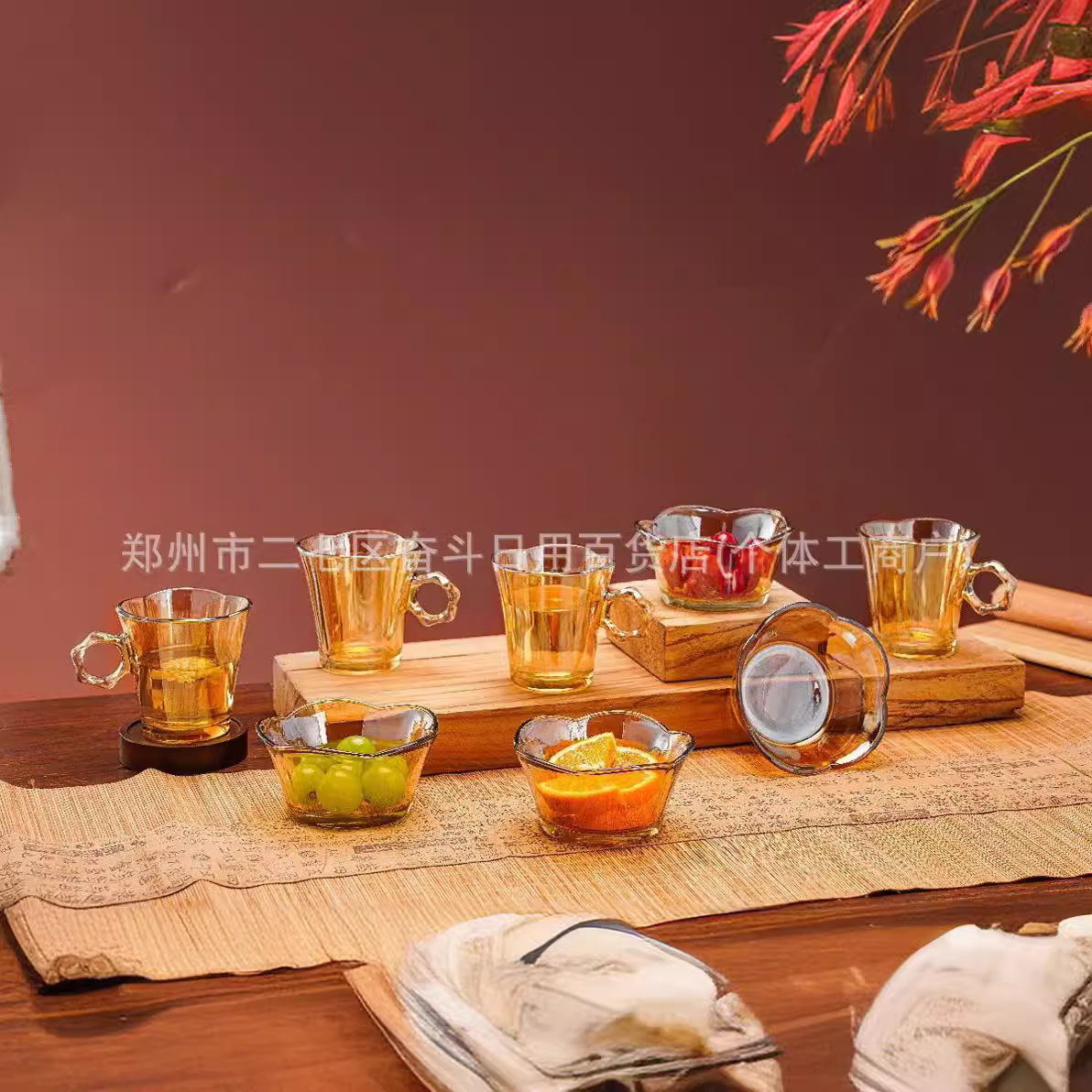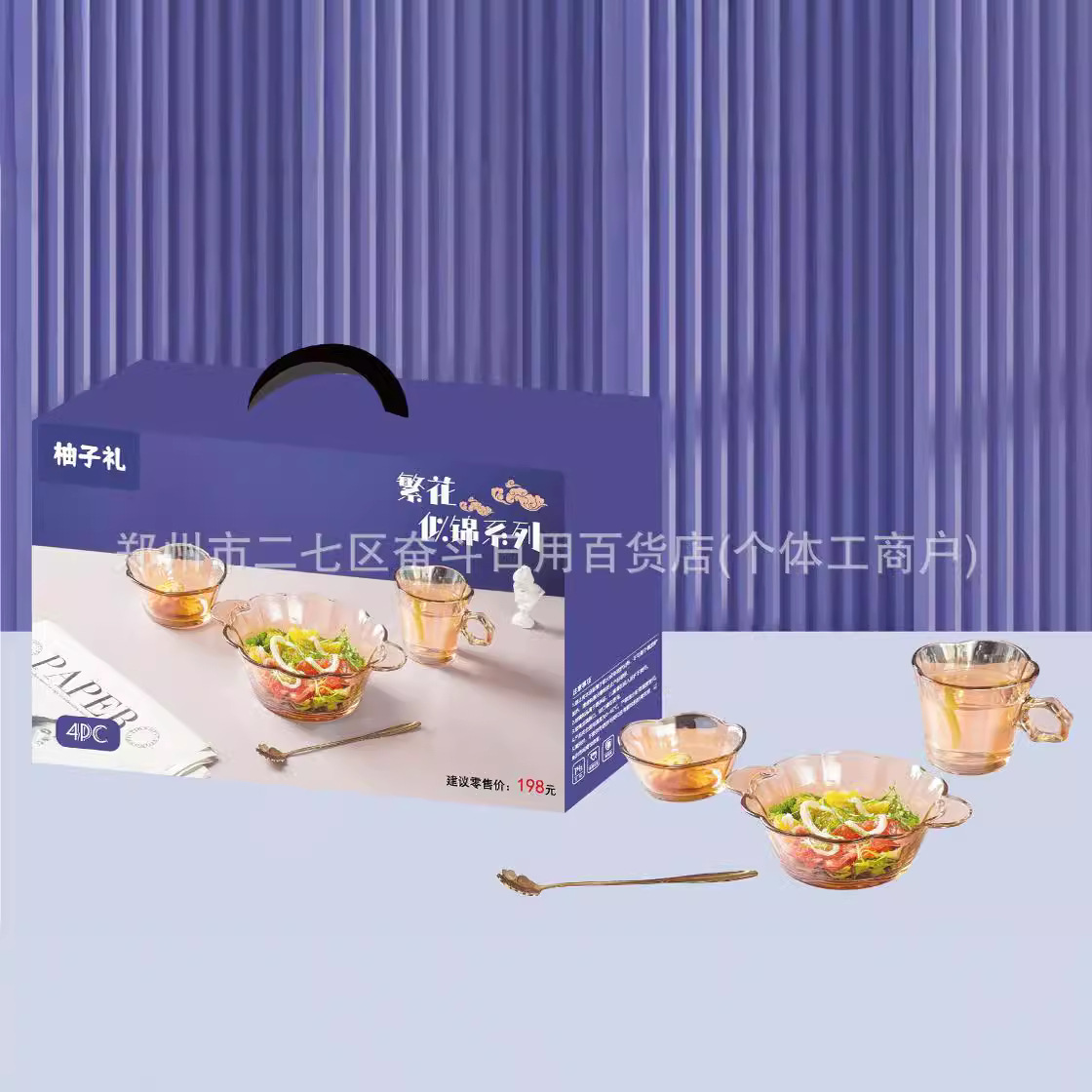 グラスボウル食器セットギフトボックス包装家庭用耐高温対カップ高颜値透明花びらカップお土産