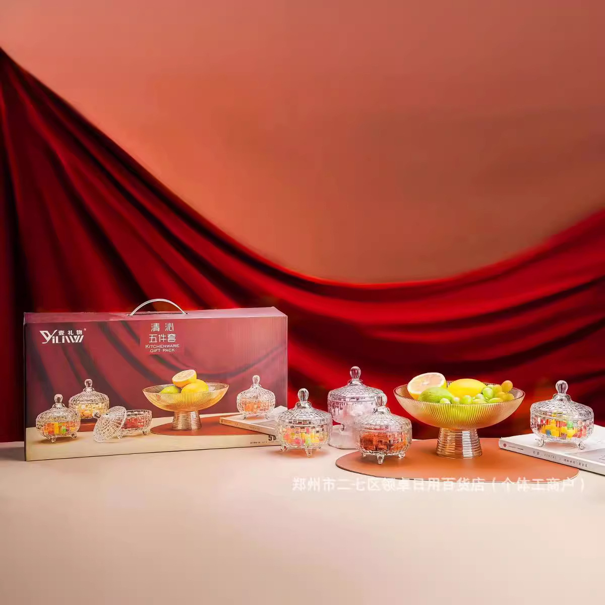 壱プレゼントガラスキャンディー缶5点セットお祝い砂糖缶客間果物砂糖心貯蔵缶祭りイベントプレゼント