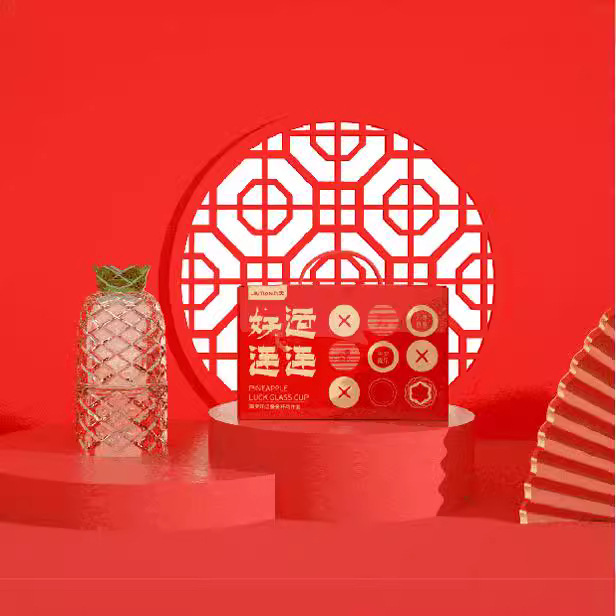 九日間パイナップル積層カップ四点セットのソーダカルシウム耐熱ガラスカップの開業イベントはプレゼント卸売りをプレゼントします。