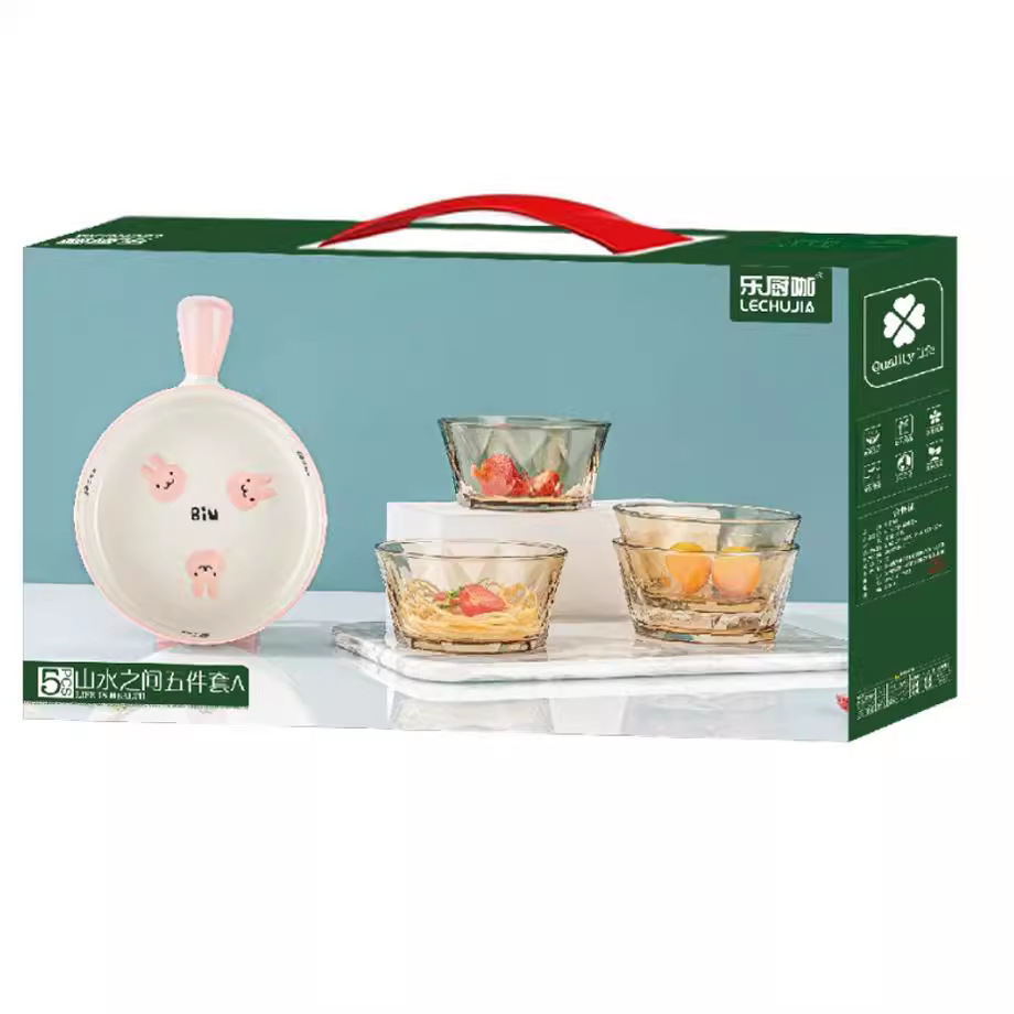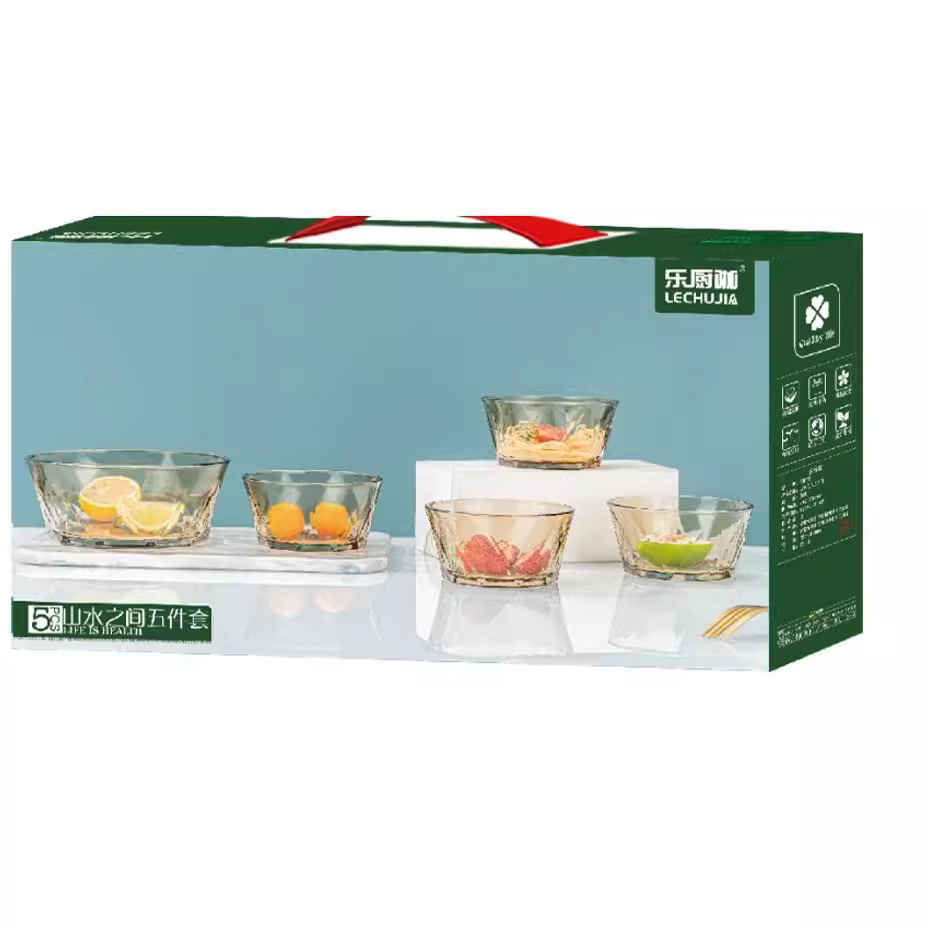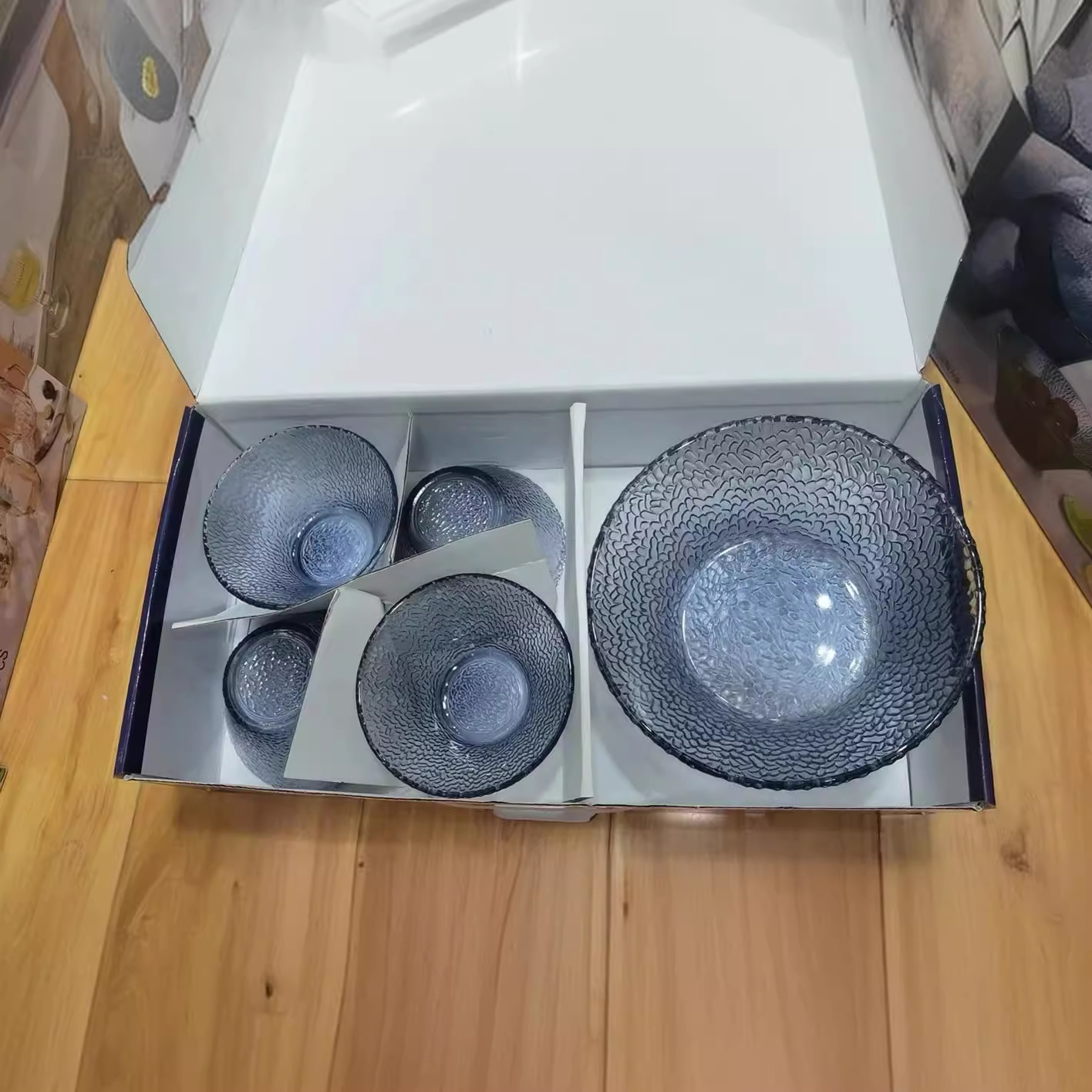 佳源五点セットガラスヨーロッパ風ハンマー模様サラダボウル礼箱セット宝石店実用プレゼント卸売り