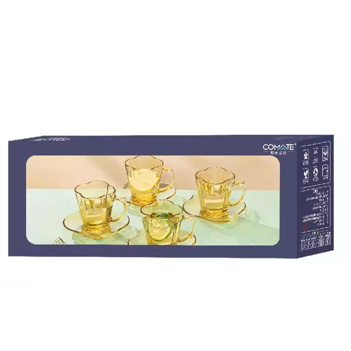 美しい山河コーヒーカップ皿十二点セットコップセット卸売りグラスカップ皿高颜値八セット/箱