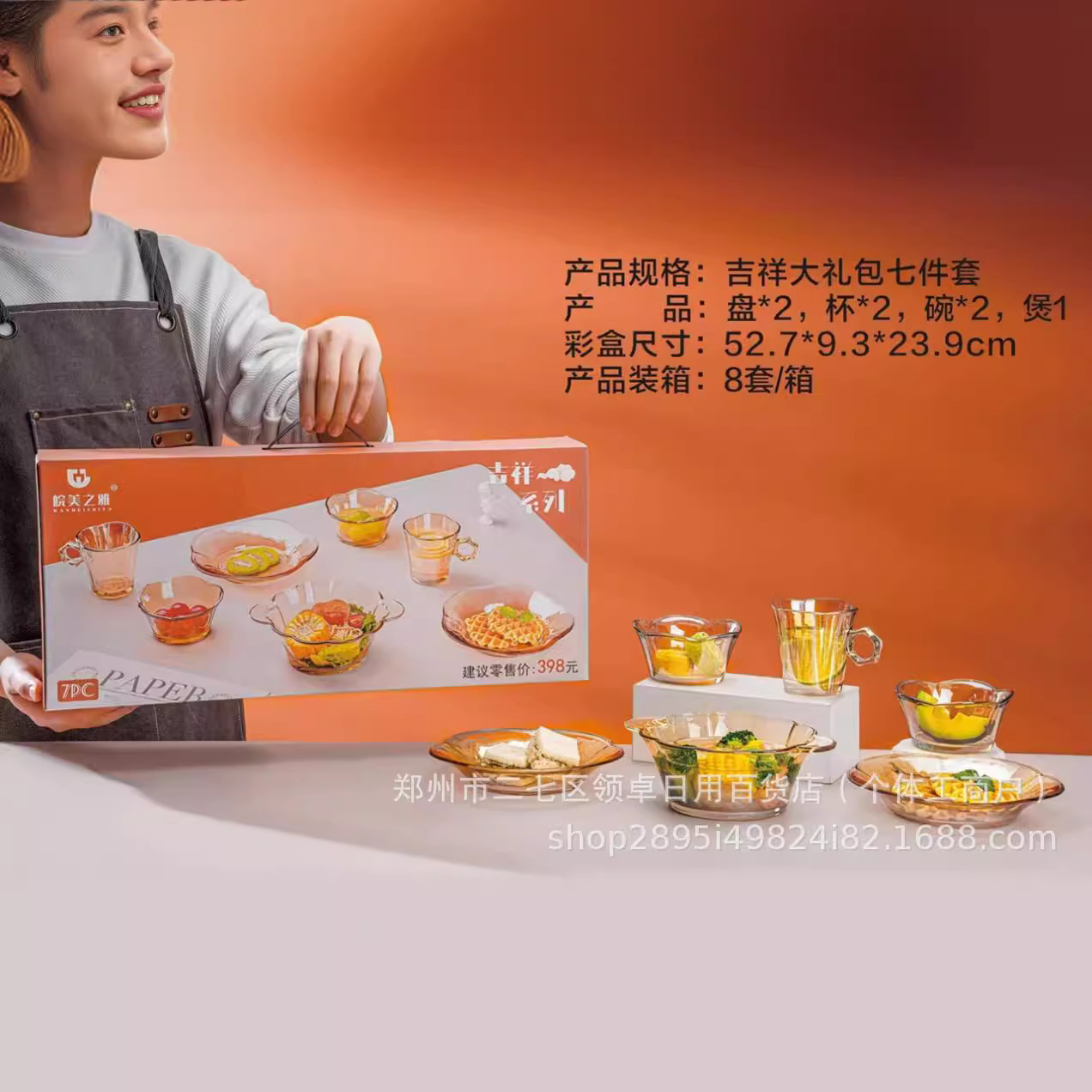 ガラス食器琥珀カボチャ鍋5点セットの軽贅沢家庭用ガラス鍋プレゼント卸売り1箱8セット