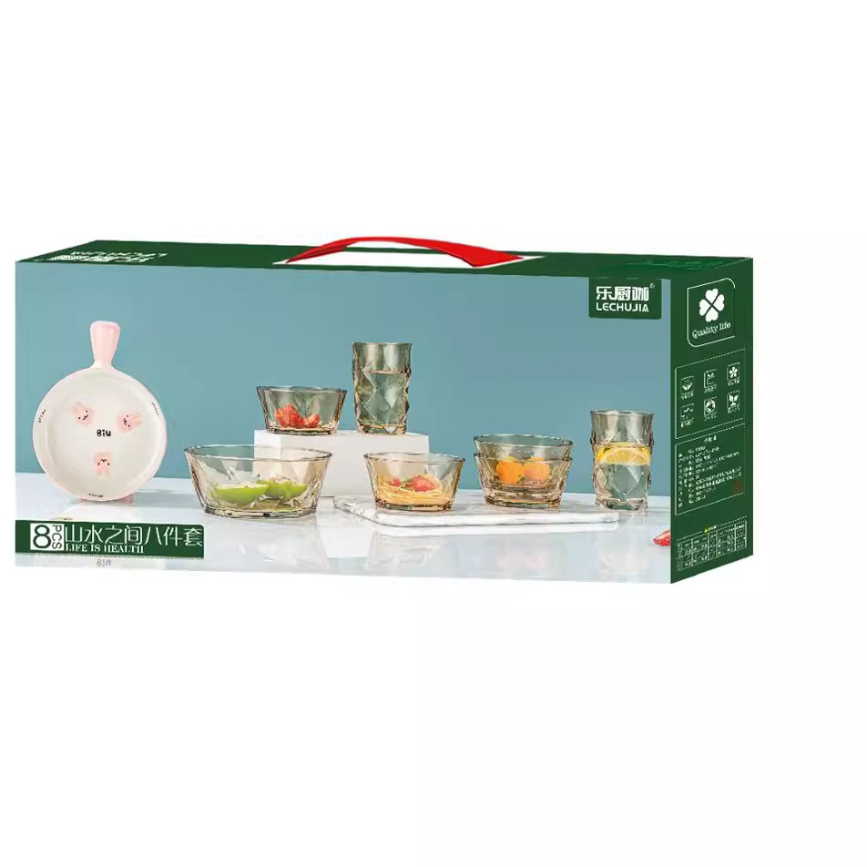 9日間のカラフルなガラス食器8点セットガラスボウルセット福祉保険ジュエリー