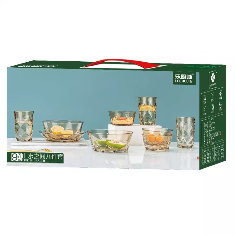家庭用山水の間に9点セットの琥珀色の果物サラダ碗食器セットのイベントプレゼント