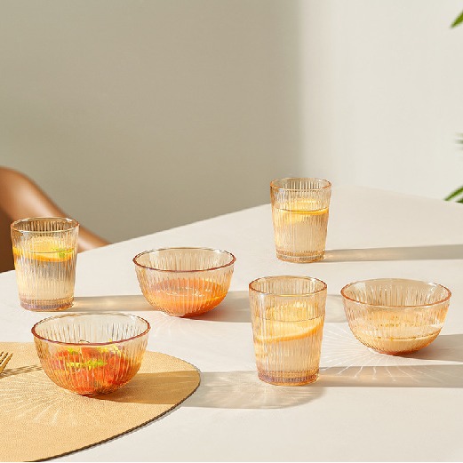 家庭用琥珀両耳碗四点セット琥珀色果物サラダ碗食器セットイベントプレゼント