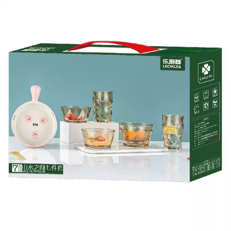 皖美之雅吉祥大ギフトバッグガラス食器7点セット宝石店会社福祉プレゼント卸売り