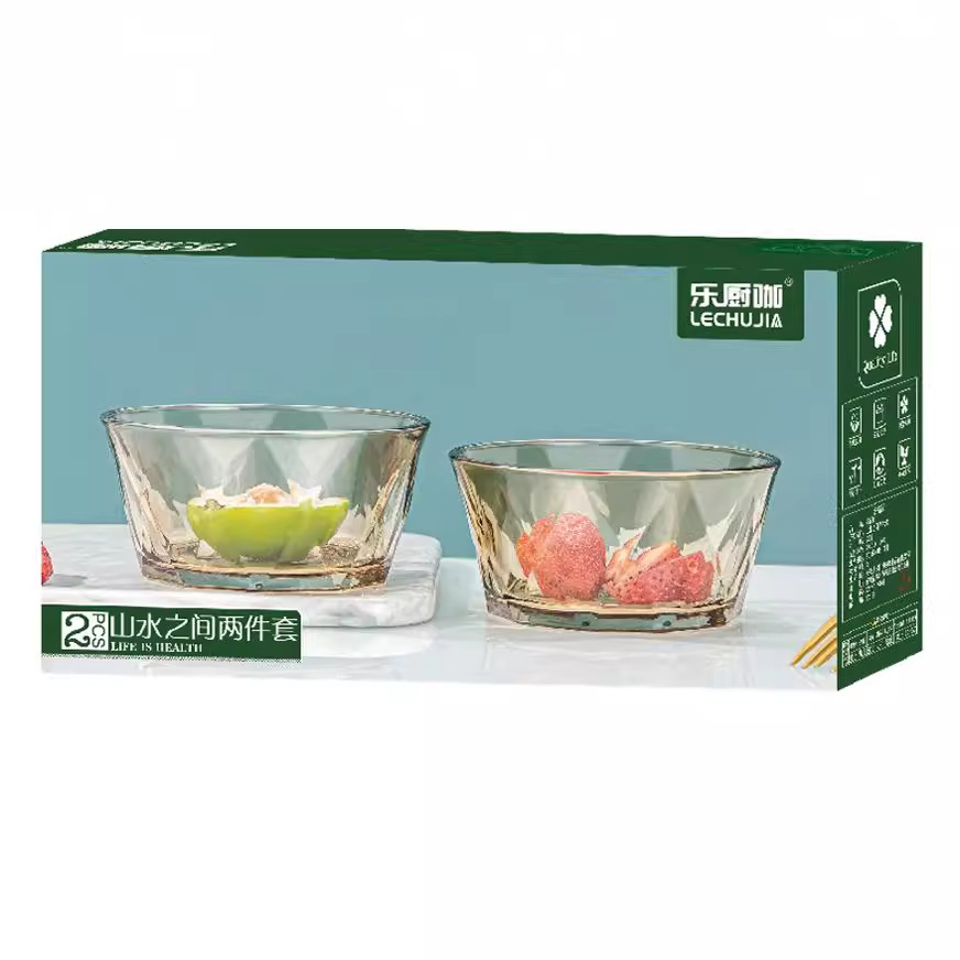 花が咲いて富貴な2つのセットの家庭用サラダ碗のデザートの碗のグラスの礼箱はすぐに卸売りします。