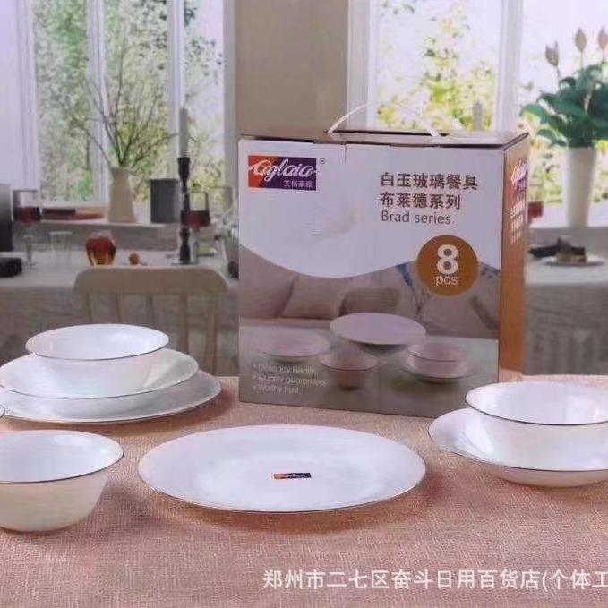 アグレヤ台所用品白玉ガラス八点セット茶碗料理皿セット販促プレゼント
