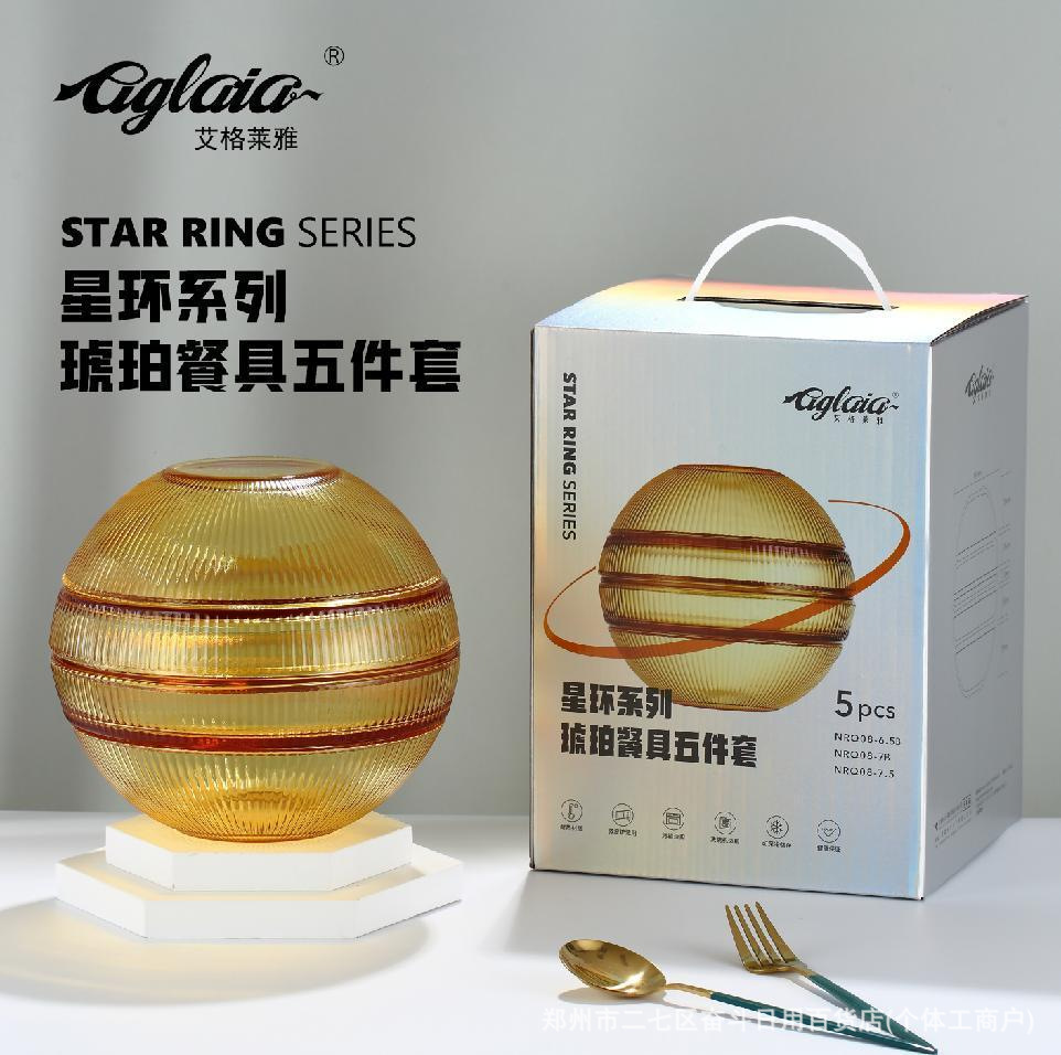 創意星ガラス耐高温セット星食器低ホウ素シリコン琥珀色碗皿芸術食器はマイクロ波ができます。