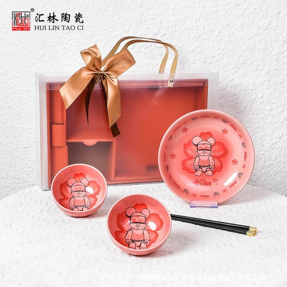 汇林陶ピンク暴力熊創意家庭用食器と箸のセットビジネス活動のお土産会員の贈り物卸売り
