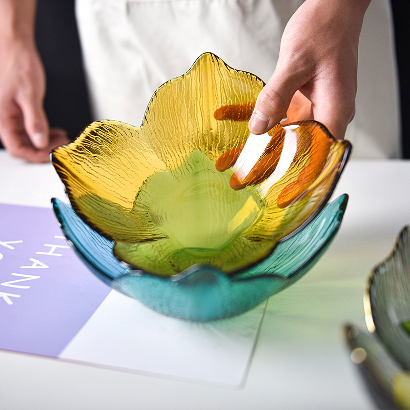 不规则ユリボウルステンドグラスフルーツドライフルーツ皿入れサラダリビング玄関収纳パレットキー