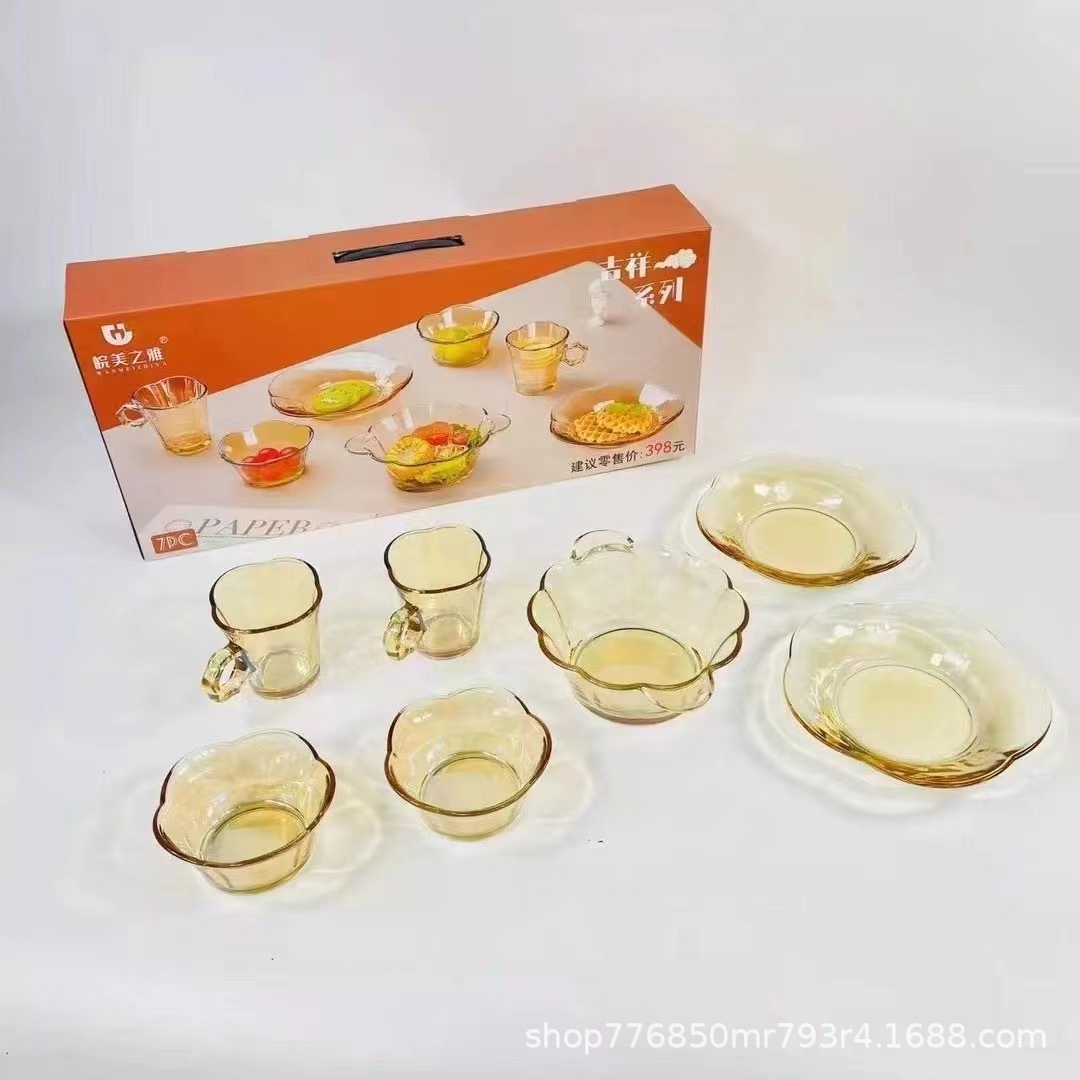 吉祥鍋七点セット皖美之雅吉祥鍋七点セット創意ガラス食器セット宝石店店慶