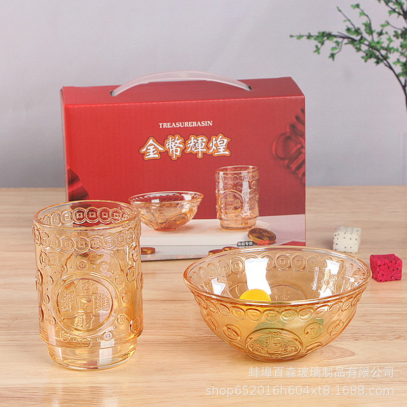 吉祥二点セットガラス食器セットプレゼント卸売り耐熱ガラス高颜値プレゼント開業大吉