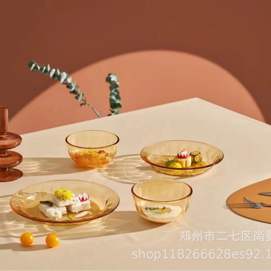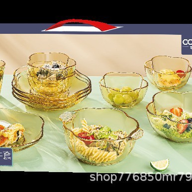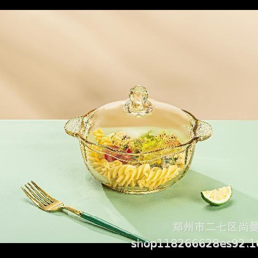 琥珀色のガラスサラダ碗高鵬シリコンガラス碗セット家庭用高温電子レンジ専用ガラス碗