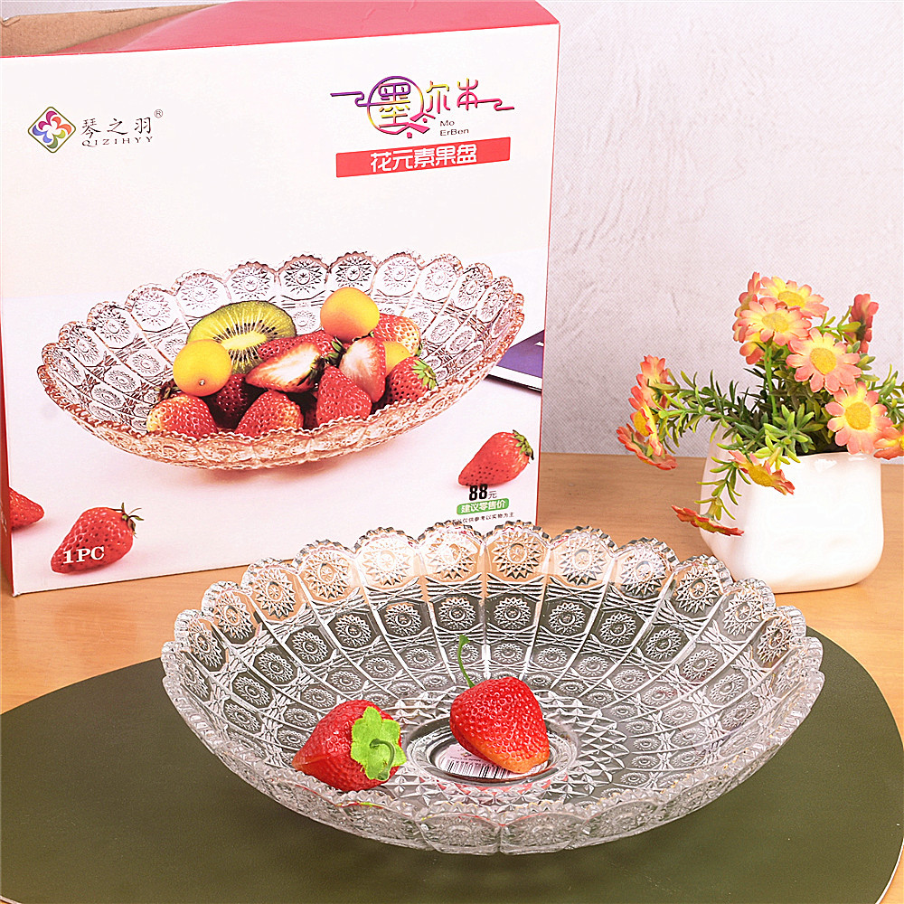 ガラスの果物の皿の乾燥した果物の間食の果物の皿の客間のお茶のいくつかの家庭の日本式のアイデアの軽い豪華なトレーのヨーロッパ式の平たい皿