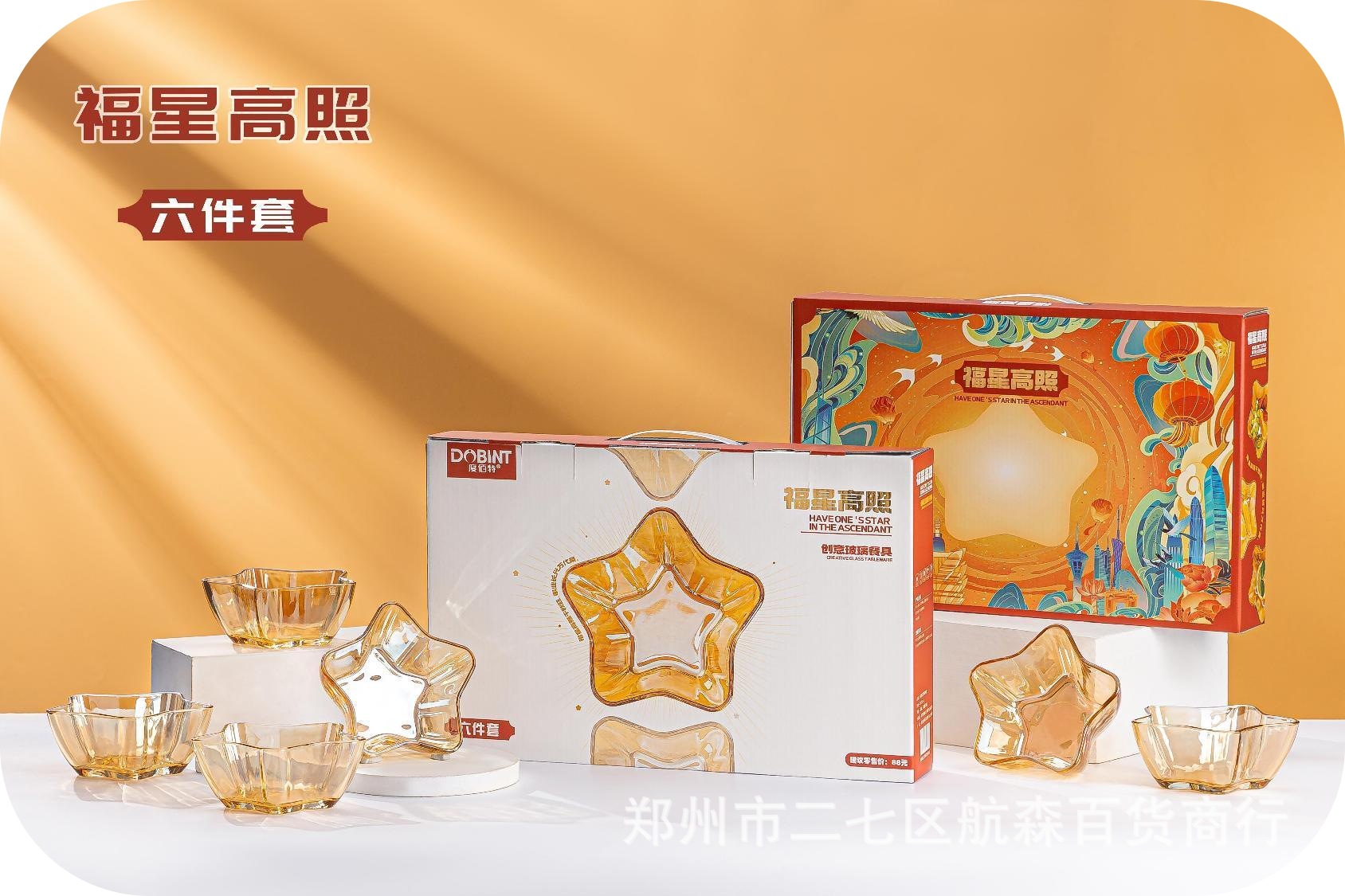 度佰特福星高照六点セット創意軽豪華ガラス碗サラダ碗プレゼント碗お土産セット