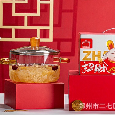 加佳プレゼント招財入鍋3.2リットルは火をつけて高ホウ素シリコンガラススープ鍋のプレゼント卸売りをすることができる