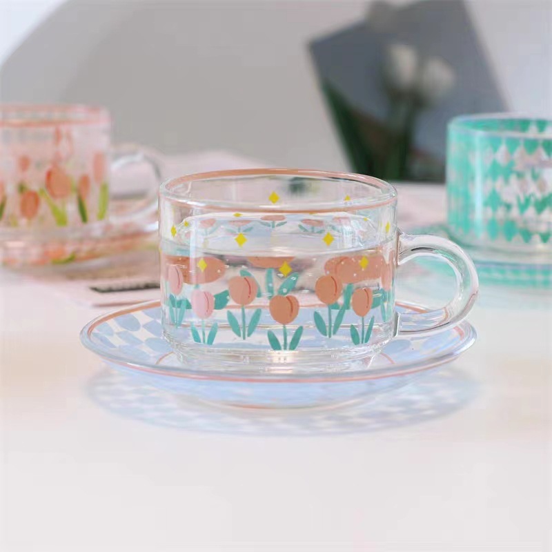 家庭用透明ガラス耐熱コーヒーカップ蝶セット花カップミルクカップハンドル付きホットカップカボチャカップ