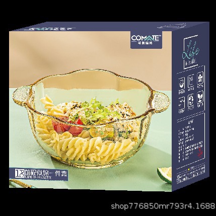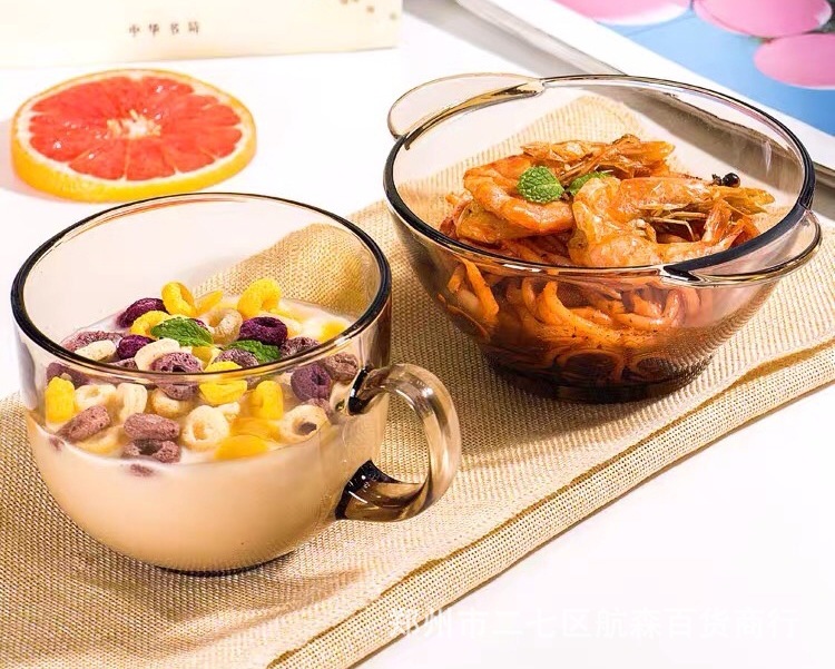 可美瑞特大サイズ茶色サラダ碗泡面碗ガラス碗双耳碗家庭用ガラス耐熱碗礼箱