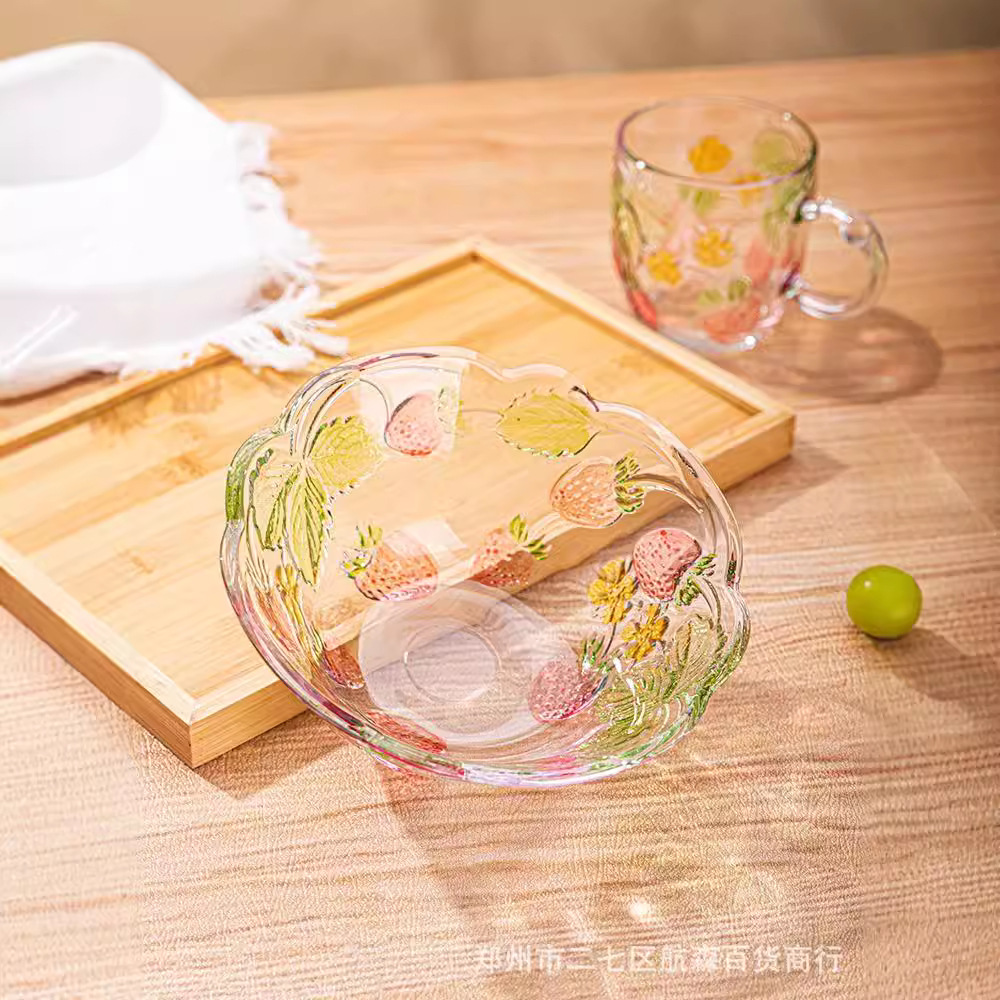 楽唯詩イチゴ大碗高顔値サラダ碗創意軽豪華ガラス碗ビジネス活動福祉プレゼント卸売り