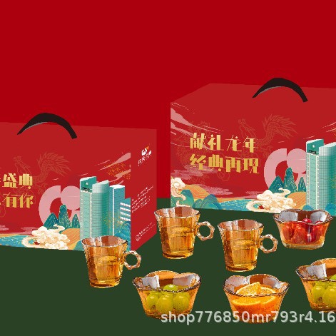 吉祥八点セット家庭用グラスコップのお土産卸売り高颜値ガラスコップ12セット/箱卸売り