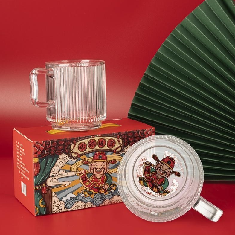 財神対カップ2点セットガラス卸売りカップ高颜値耐熱カップオープン大吉フリーカッププレゼント