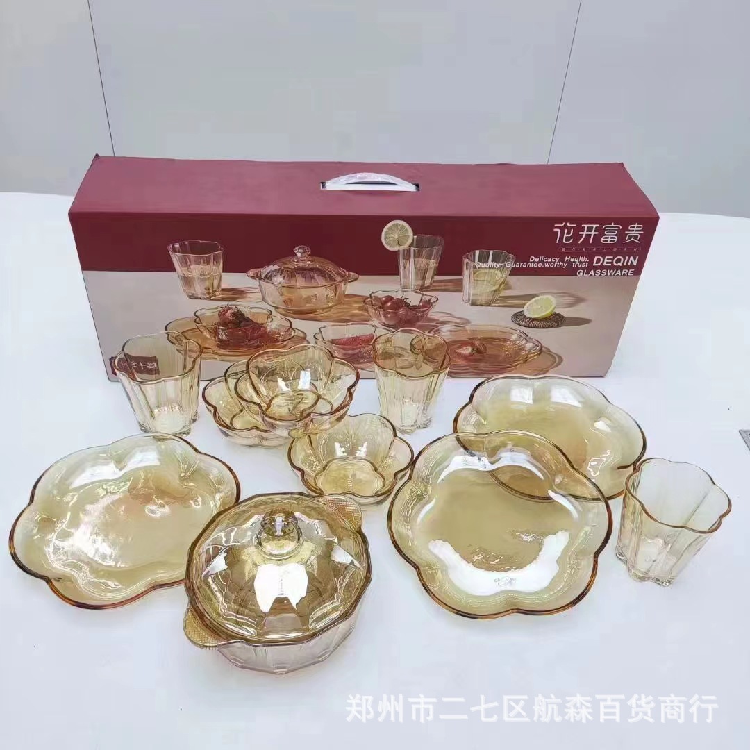度佰特流金納福7点セット創意ガラス碗サラダ碗セットお土産ビジネスプレゼント卸売り