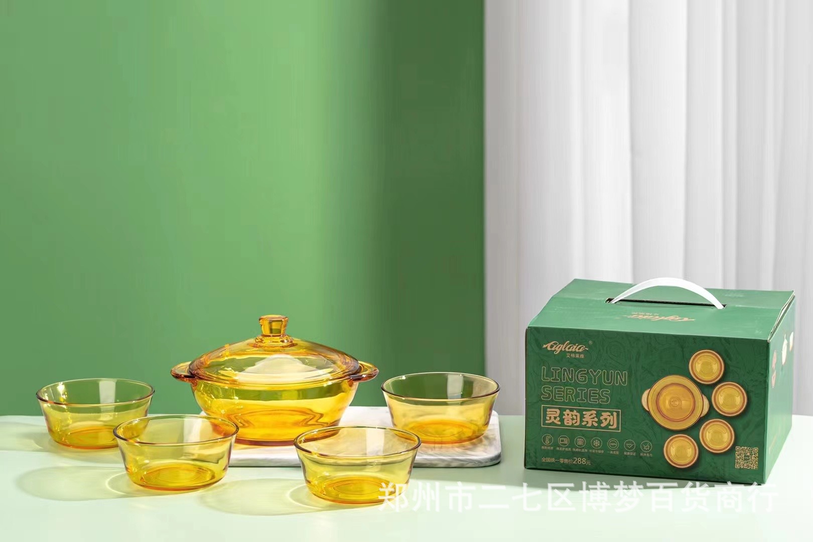アグレヤ霊韻スープ鍋5点セットホウケイ酸強化ガラス耐熱琥珀色イベントプレゼント