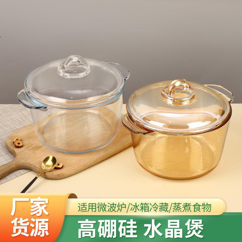 透明茶色ガラス水具双耳鍋蓋付き台所用品スープ鍋家庭用シングル水晶鍋プレゼント
