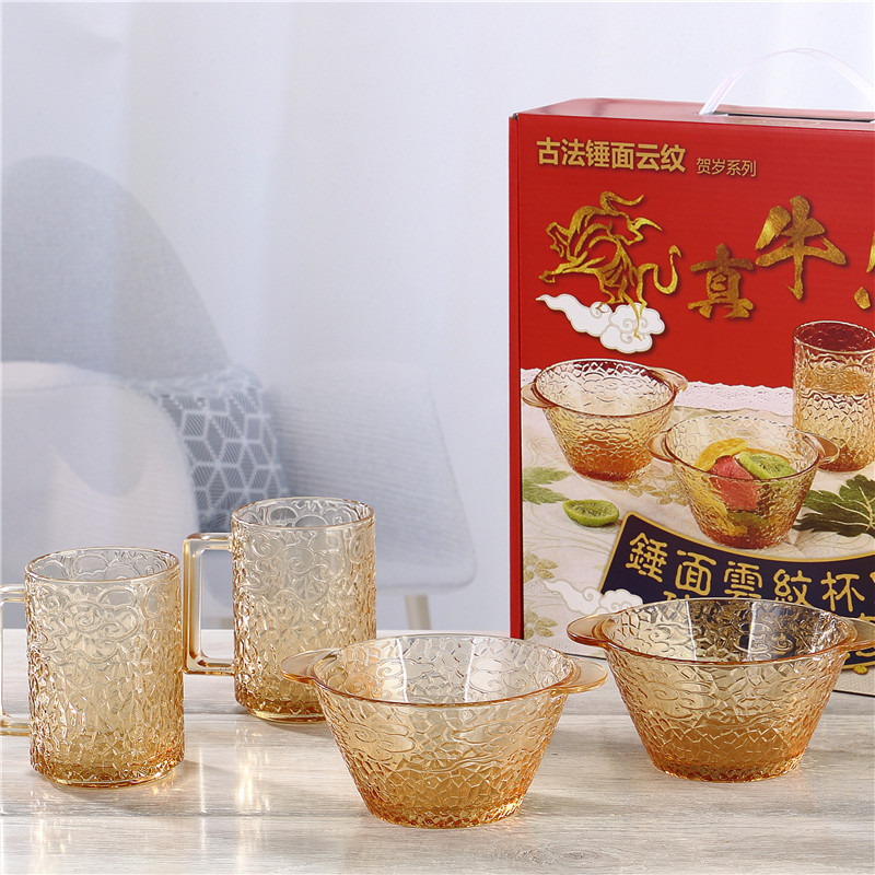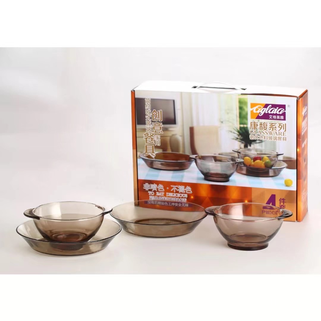 ガラスボウル食器セット家庭用カラーオークガラス食器6点セット広告プレゼント