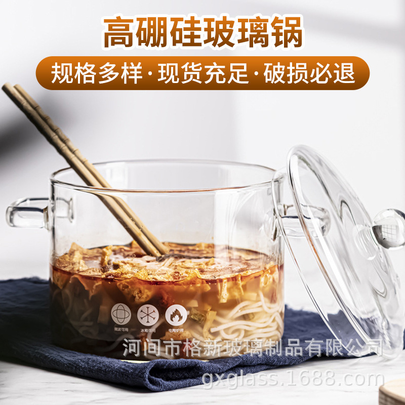 透明大容量双耳養生鍋ミルク鍋スープ鍋ミニ家庭用カップラーメンしゃぶしゃぶ鍋高ホウ素シリコンガラスシチュー鍋