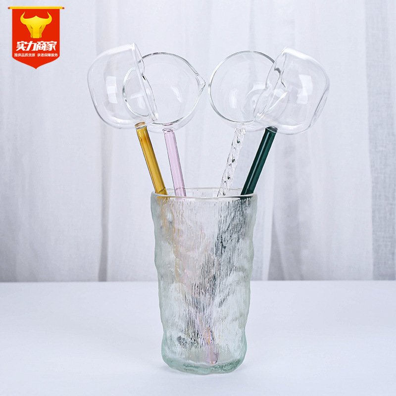 クリエイティブミルクガラス攪拌スプーンカラー透明ガラススパイラルスプーンコーヒースプーン丸頭ガラス攪拌スプーン