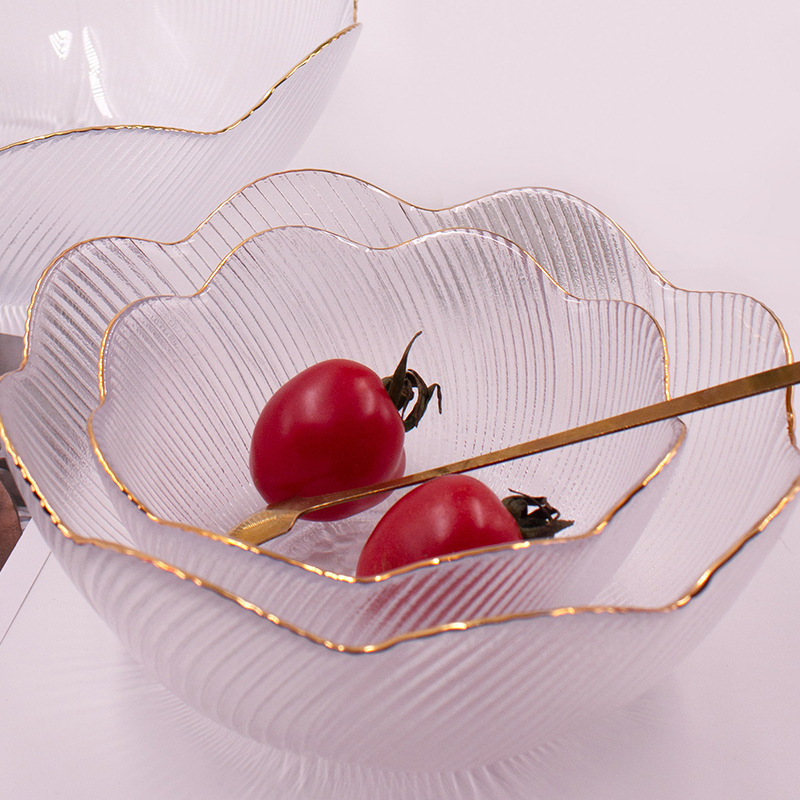 ガラス皿果物サラダボウルクリエイティブデザートボウル家庭用ガラスボウル美しい金辺食器大トランペットセット